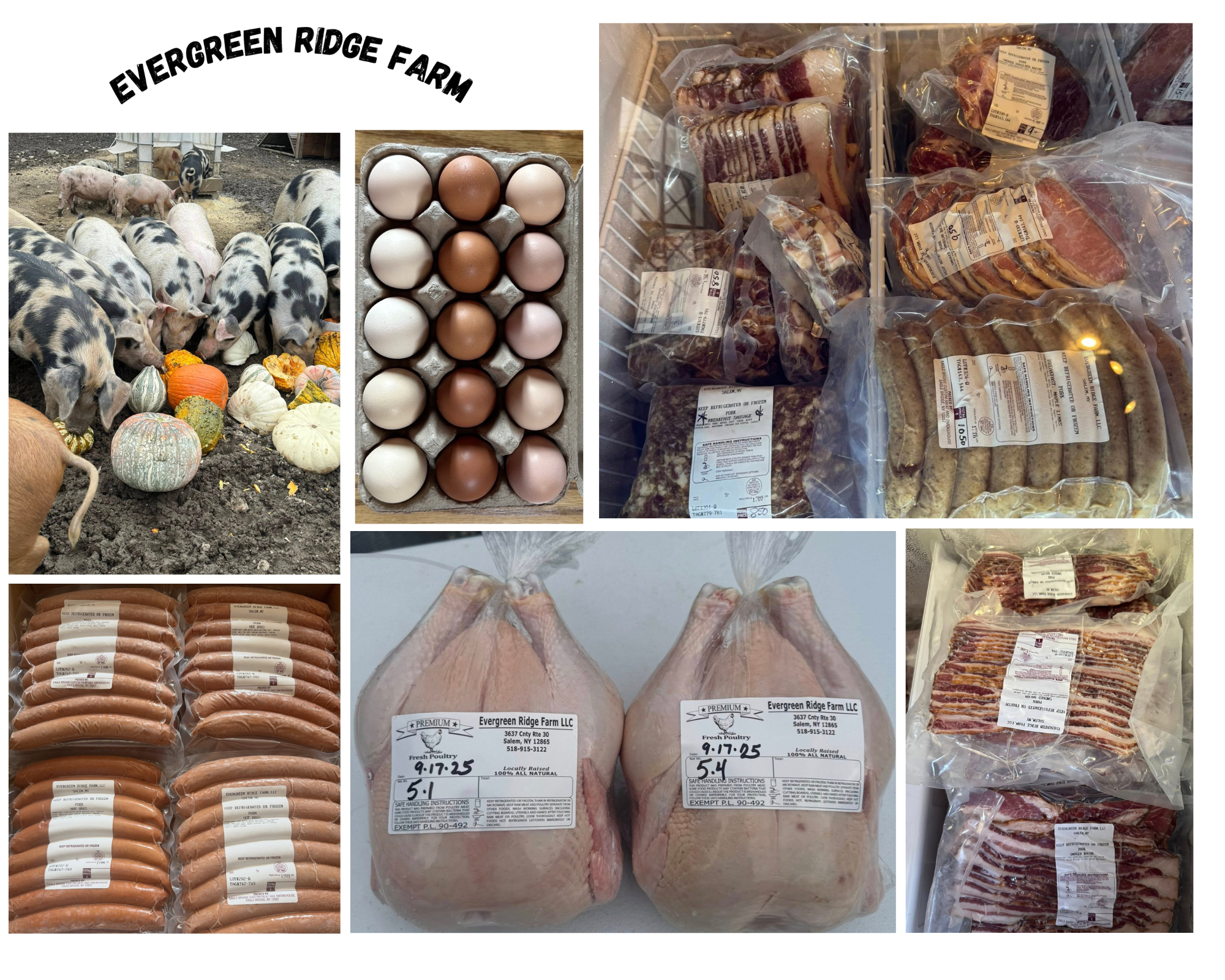 Nestled in the rolling hills of Hebron, NY, Evergreen Ridge Farm spans 103 acres of both farm and woodland. While our farm was officially established in 2023, our vision has been years in the making. We proudly offer a variety of farm-fresh products, including chicken, eggs, pork, beef, and lamb, as well as a selection of other locally sourced goods. At Evergreen Ridge Farm, we’re committed to supporting our community by providing high-quality products at affordable prices.